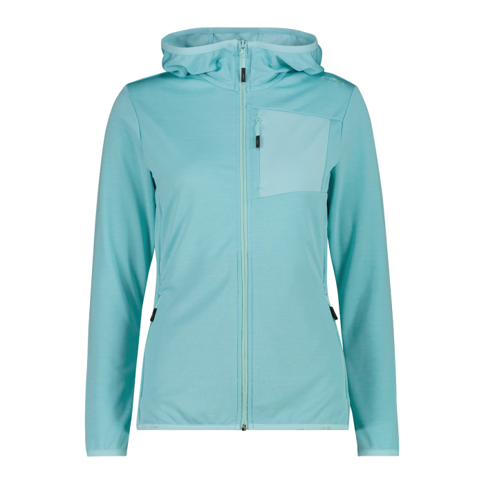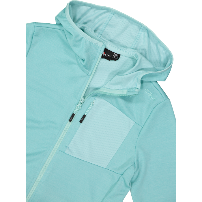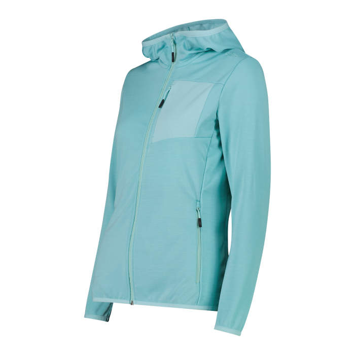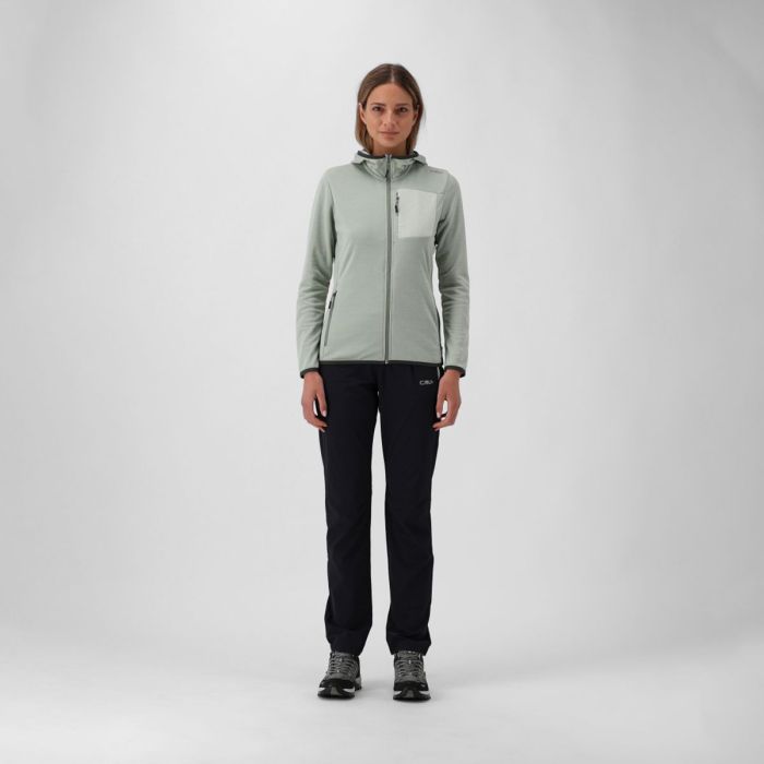 Dámská bunda se zipem a kapucí z lehkého žakárového melange, ideální jako druhá vrstva pro venkovní aktivity a volný čas. Lehká, pružná látka zajišťuje pohodlí, prodyšnost a optimální střih, ideální pro použití v mírnějších obdobích. OEKO-TEX® Standard 100 je certifikovaný a vyráběný interně, zajišťuje důraz na kvalitu a je šetrný k pleti. Funkční design zahrnuje dvě přední kapsy na zip a praktickou náprsní kapsu na zip, navrženou tak, aby vaše věci byly vždy po ruce. Univerzální a moderní bunda, novinka v letní kolekci Unlimitech od CMP, ideální jako střední vrstva nebo na samostatné nošení pro sportovní a dynamický vzhled.