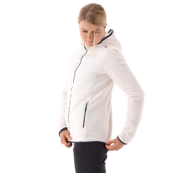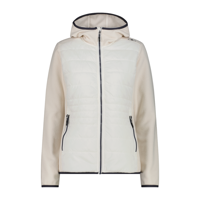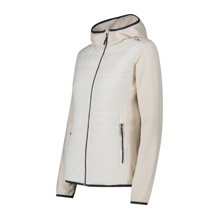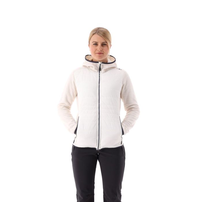 Tato dámská hybridní bunda CMP kombinuje technický výkon a pohodlí ve všestranném oděvu navrženém pro chladnější roční období. Polstrování s technologií Feel Warm Flat nabízí zvýšenou tepelnou izolaci i ve vlhkých podmínkách, udržuje tělo v teple, aniž by ho zatěžovalo. Pletená tkanina, která je výsledkem kombinace několika materiálů, zaručuje měkkost, prodyšnost a volnost pohybů. Design je doplněn pevnou kapucí, předním celorozepínacím zipem s vnitřní větruodolnou légou a dvěma praktickými bočními kapsami se zapínáním na zip. Díky ergonomickému střihu je ideální jako střední vrstva pod bundu v nejchladnějších dnech a jako svrchní oděv pro outdoorové výlety uprostřed sezóny. Technický a ženský oděv, ideální pro lidi, kteří se rádi volně pohybují, aniž by obětovali teplo, styl a funkčnost.