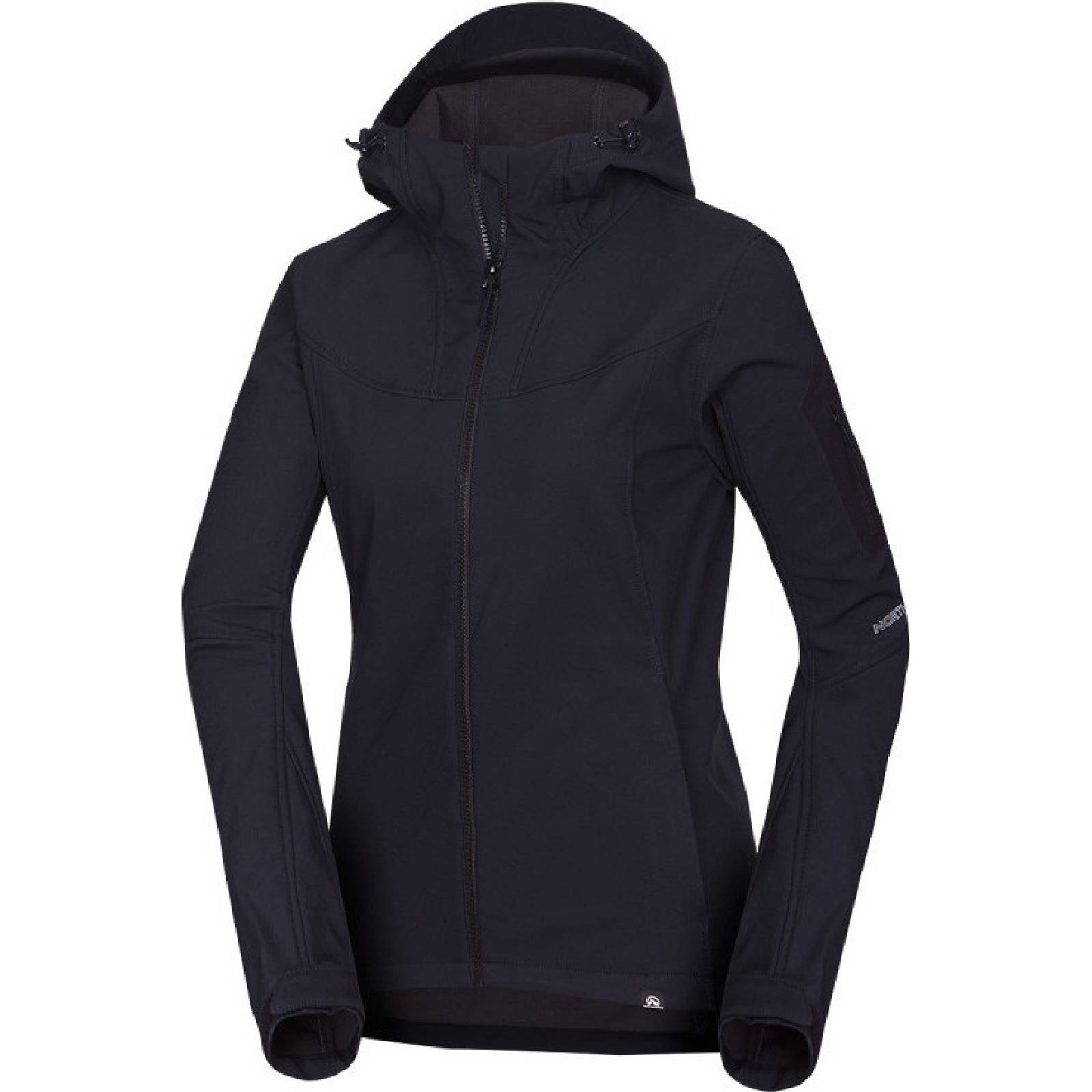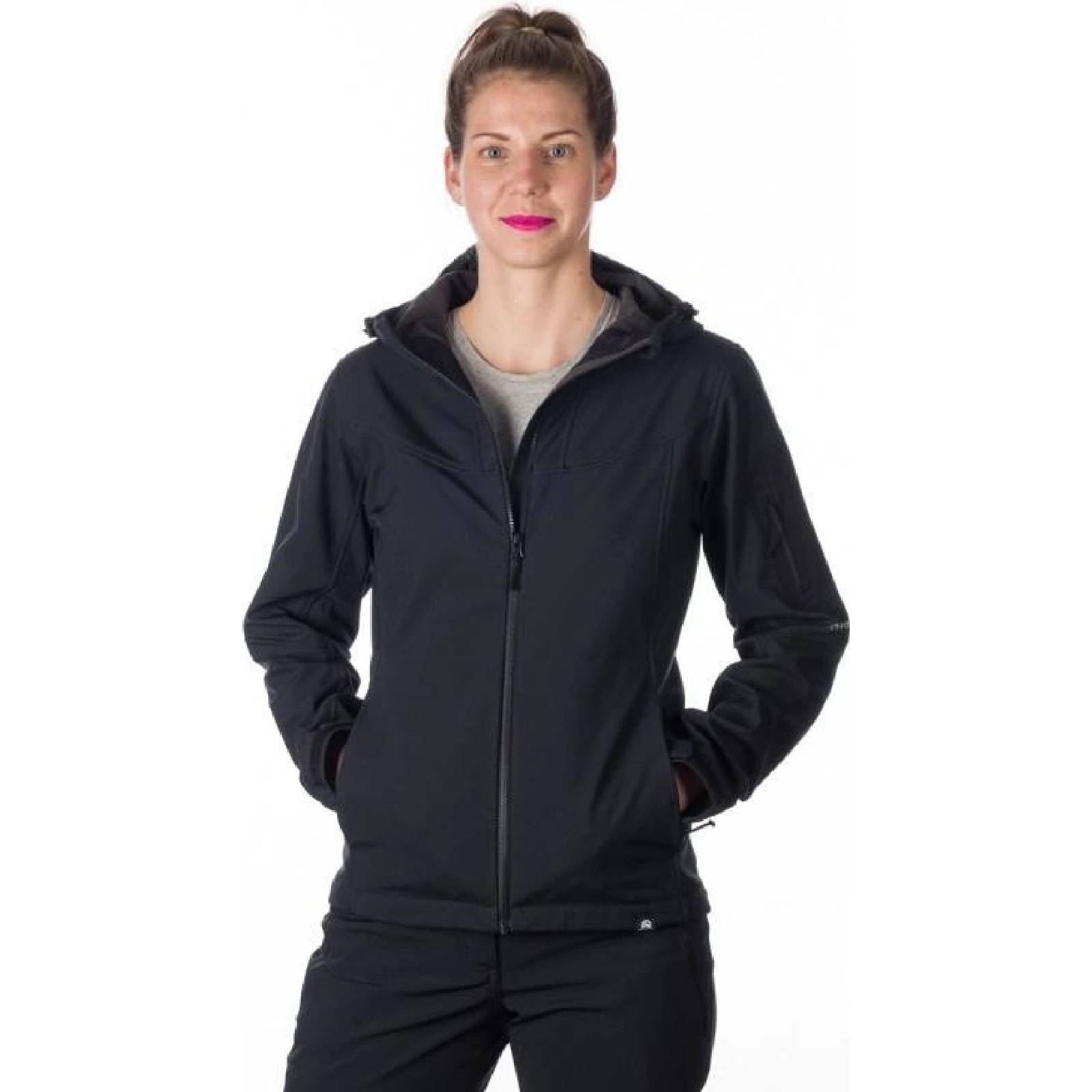 Vodní sloupec 10.000 mm - prodyšnost 5.000 g/m2/24h. Dámská softshellová bunda s hřejivou konstrukcí, ekologická vodoodpudivá úprava, dvě kapsy na zip, 3D kapuce, nastavitelný okraj bundy i rukávů.