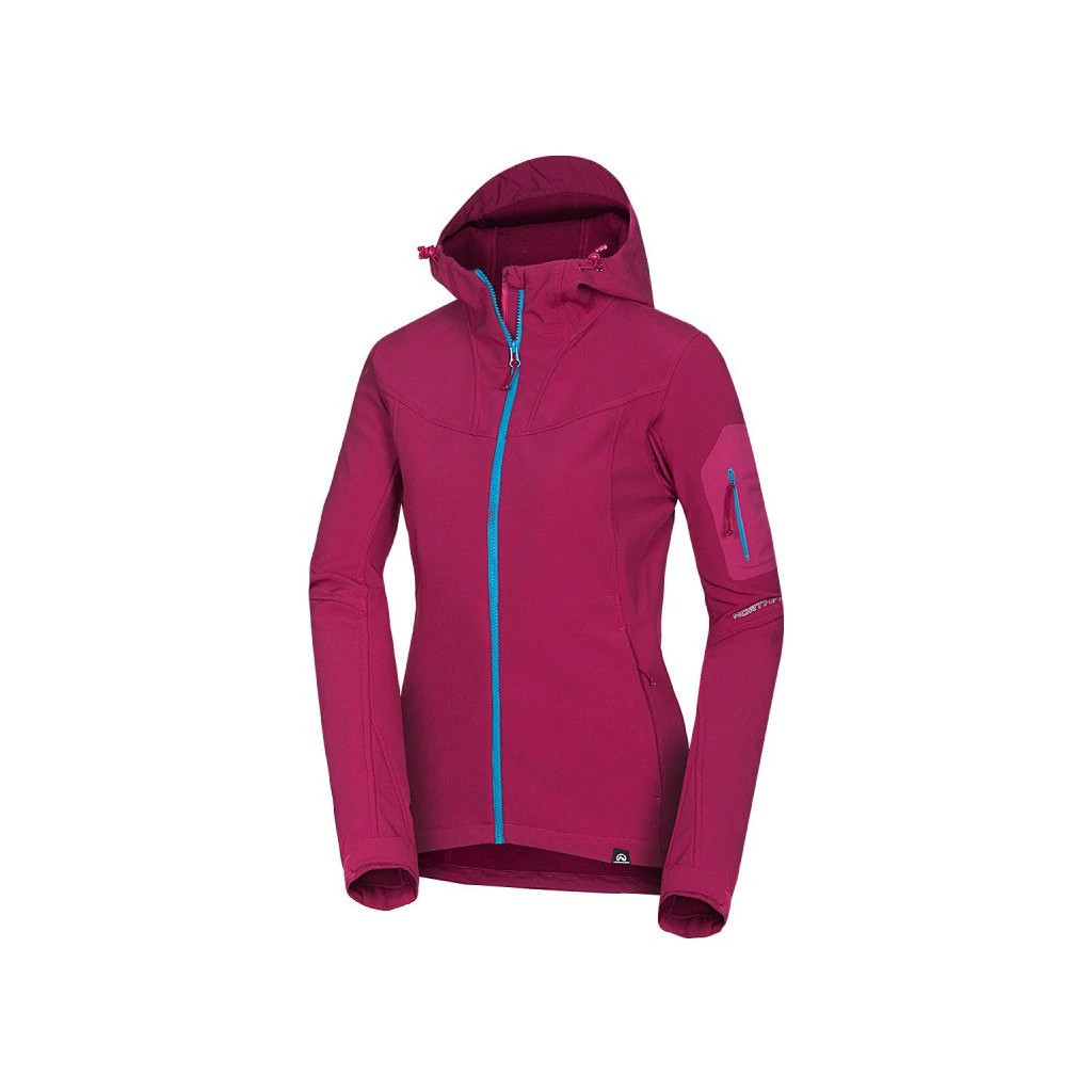 Vodní sloupec 10.000 mm - prodyšnost 5.000 g/m2/24h. Dámská softshellová bunda s hřejivou konstrukcí, ekologická vodoodpudivá úprava, dvě kapsy na zip, 3D kapuce, nastavitelný okraj bundy i rukávů.