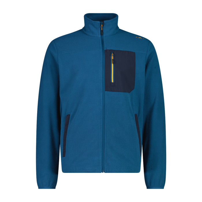 Pánská bunda z Jacquard Arctic Fleece, technický oděv navržený tak, aby zajistil lehkost, izolační měkkost a tepelné pohodlí během venkovních aktivit. Látka Arctic Fleece kombinuje odolnost proti oděru, snadné praní a rychlé schnutí, což činí oděv praktickým a odolným i při nejintenzivnějším každodenním nošení. Díky zipu vpředu, dvěma předním kapsám a náprsní kapse zajišťuje funkčnost a praktičnost pro bezpečné uložení drobných věcí. Měkká a všestranná, tato bunda je ideální jako svrchní vrstva v mírnějších dnech nebo jako druhá vrstva v chladnějších dnech, kombinující technický výkon a pohodlí CMP.